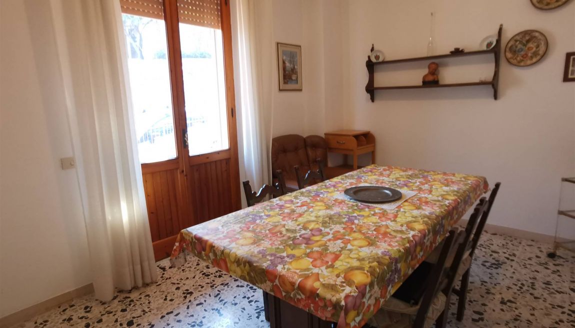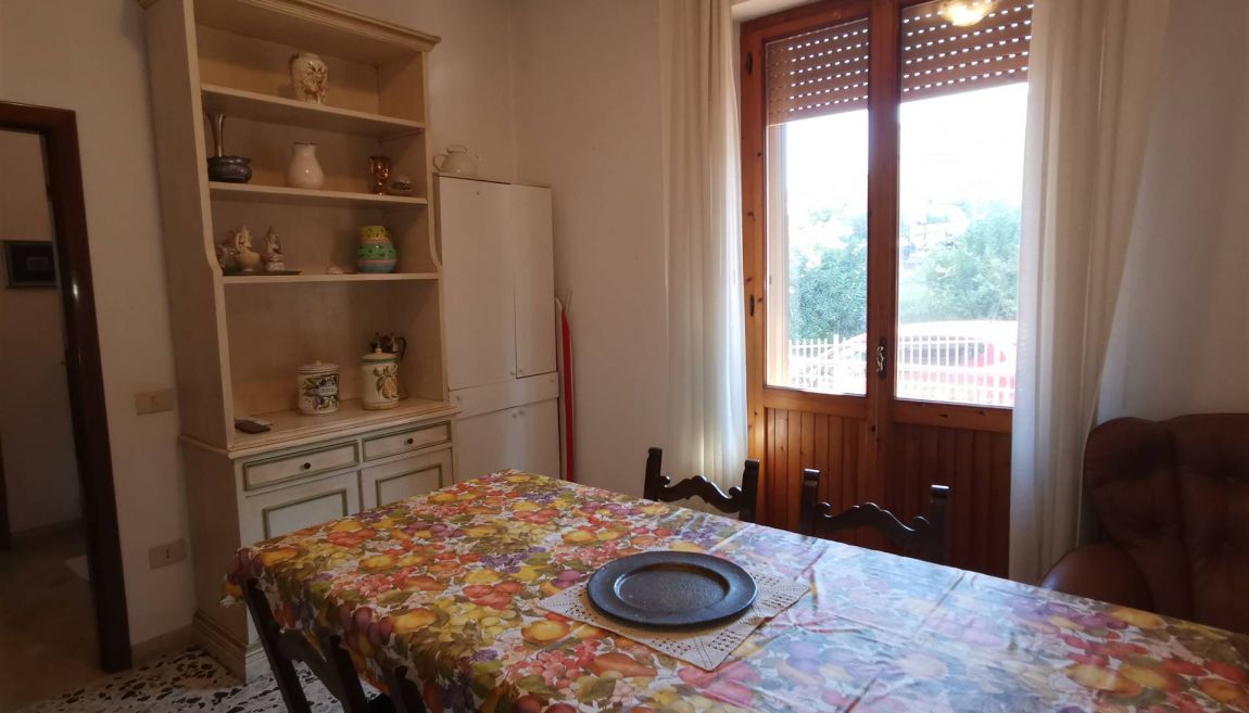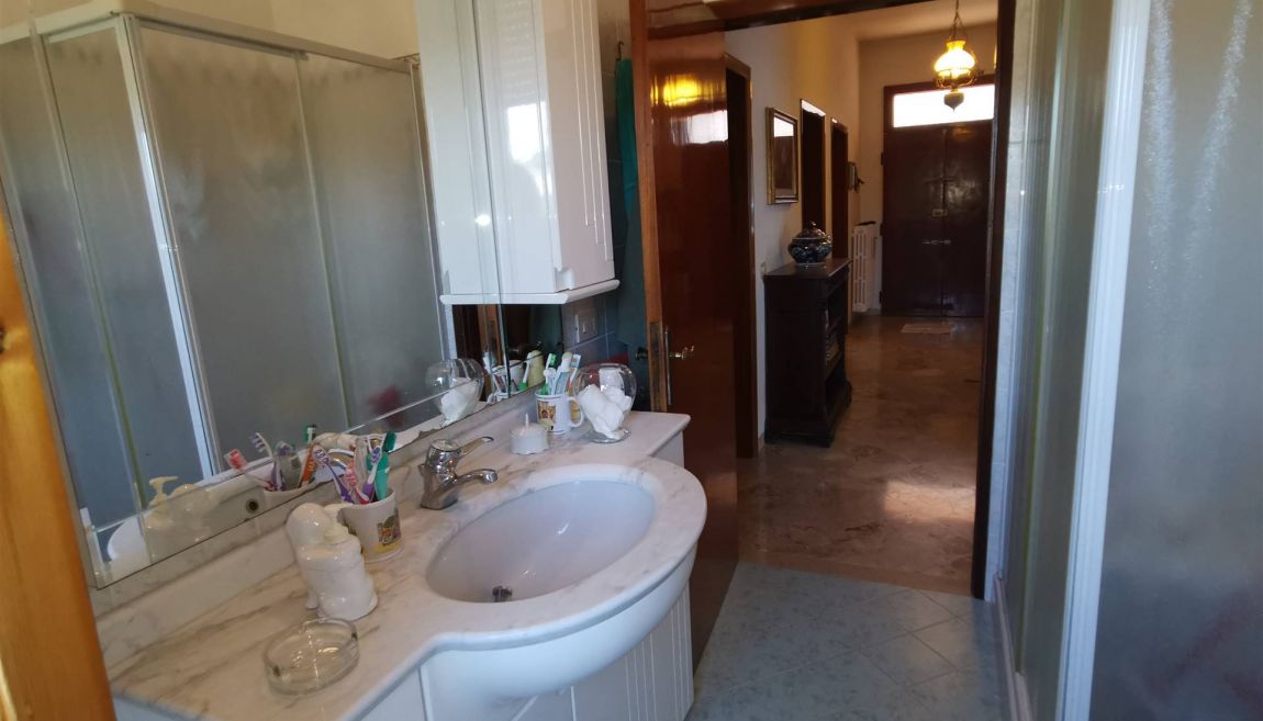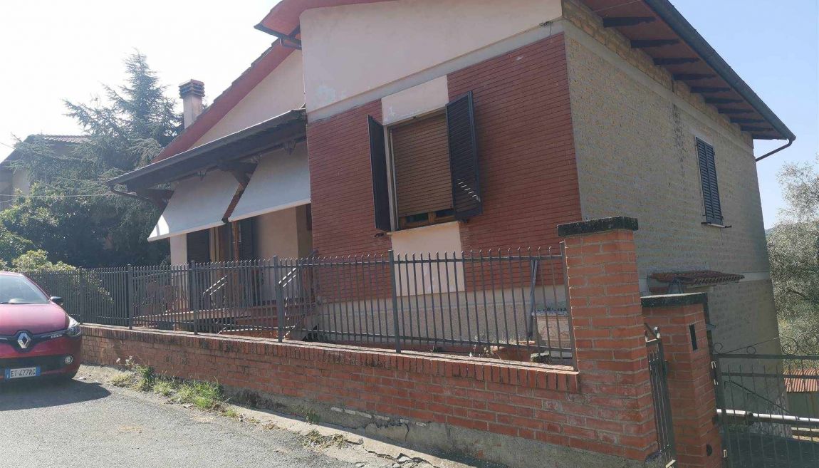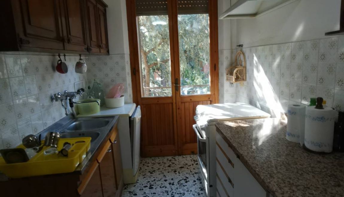 Nella parte bassa troviamo un resede, giardino e un oliveto terrazzato con 30 olivi. Al piano rialzato invece troviamo un appartamento molto grande e luminoso di circa 110 mq, così suddiviso: ampio disimpegno, cucinotto e tinello con balcone, salotto, 2 camere matrimoniali di cui una con balcone, e una cameretta, bagno c/doccia. Al piano seminterrato c'è un altro appartamento di circa 55 mq formato da un grande taverna con camino, angolo cottura, camera matrimoniale e bagno con vasca, garage di 50 mq doppio finestrato e cantine di 70 mq legnaia completano la proprietà e un resede con rampa che gira intorno alla casa. Dai piani alti si può anche ammirare una discreta vista. L'immobile è degli anni '70 anche se è in buone condizioni necessita di lavori di ammodernamento, utenze indipendenti e gas metano. Ampia trattabilità di prezzo.