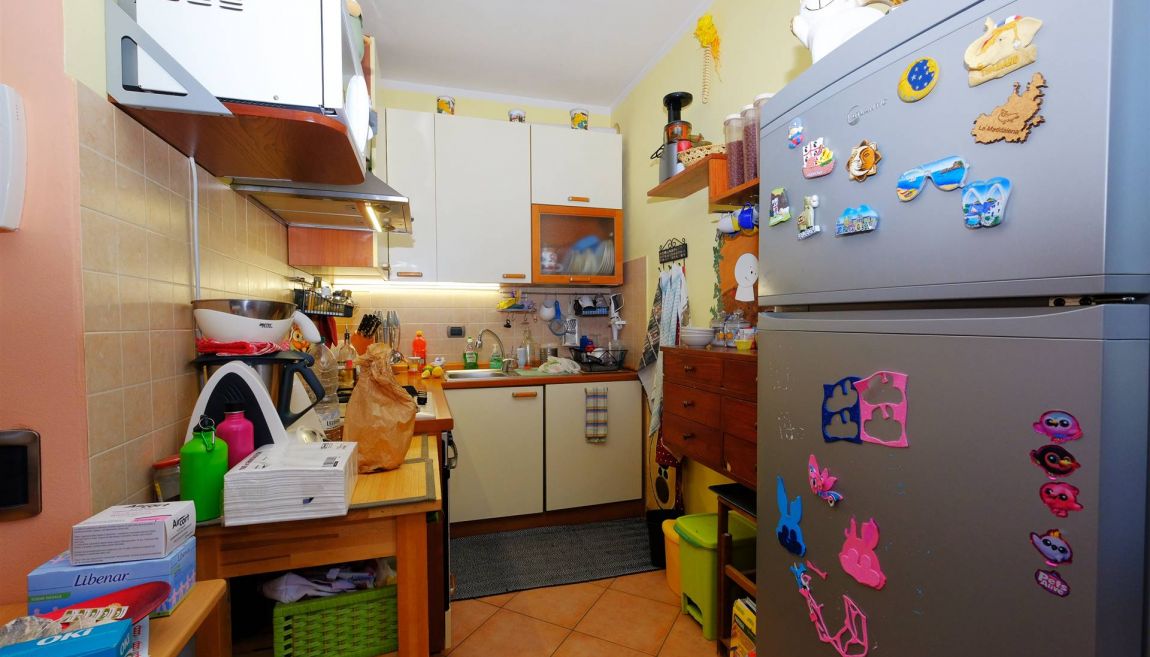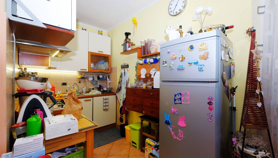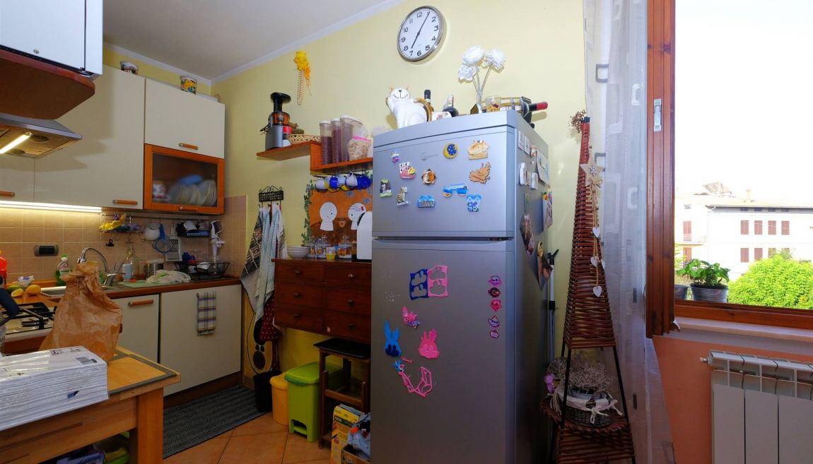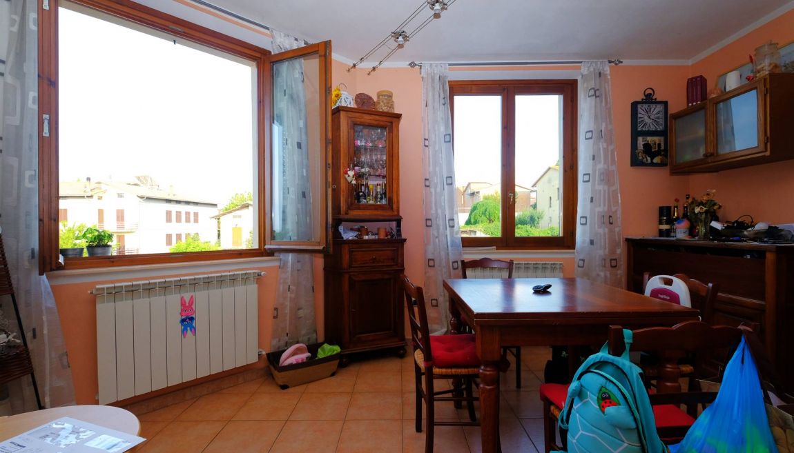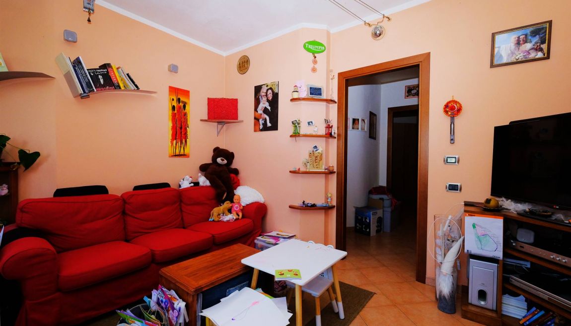E' composto da una scala d'ingresso comune con un altro appartamento, ampio salotto con angolo cucina, due camere da letto (una grande matrimoniale ed una utilizzabile anche come matrimoniale), bagno con doccia e vasca, ripostiglio, sottotetto, canna fumaria per eventuale camino/stufa a legna/pellet.
