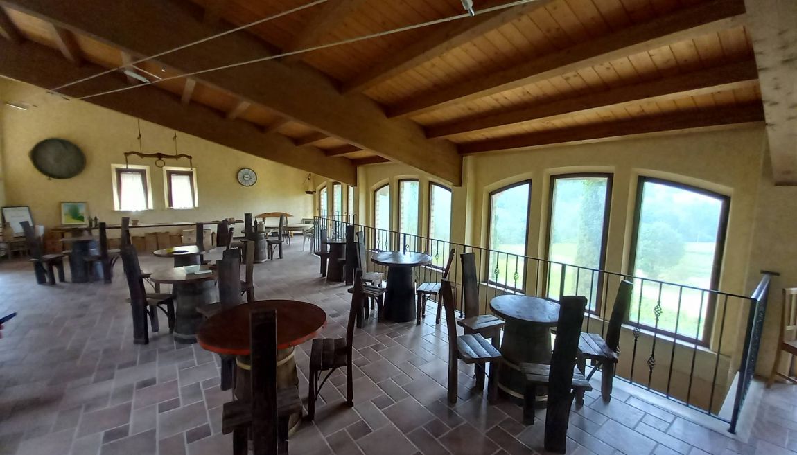 Sopra la cantina di vinificazione si trova la sala accoglienza di circa mq 200 completamente arredata e con doppi servizi anche x diversamente abili.