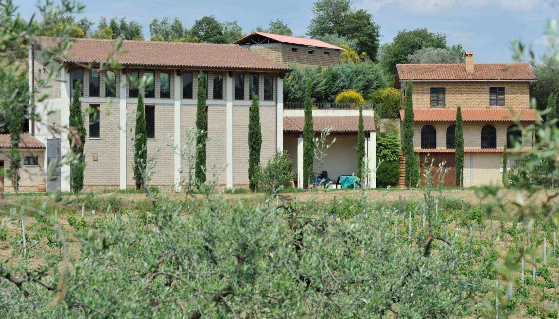 Cantina di Vinificazione edificata nel 2000 con attrezzatura capiente per l'azienda. Il materiale tufaceo con il quale è stata rivestita la cantina di vinificazione ( l'edificio alto in foto) è privo di Radon , come certificato.