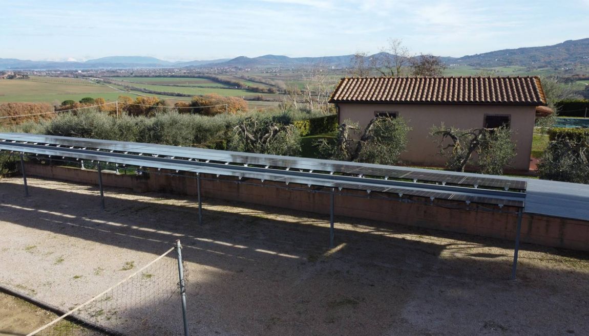 Correda la proprietà un parcheggio coperto da 8 posti auto con impianto fotovoltaico, sul tetto, da 10 KW.