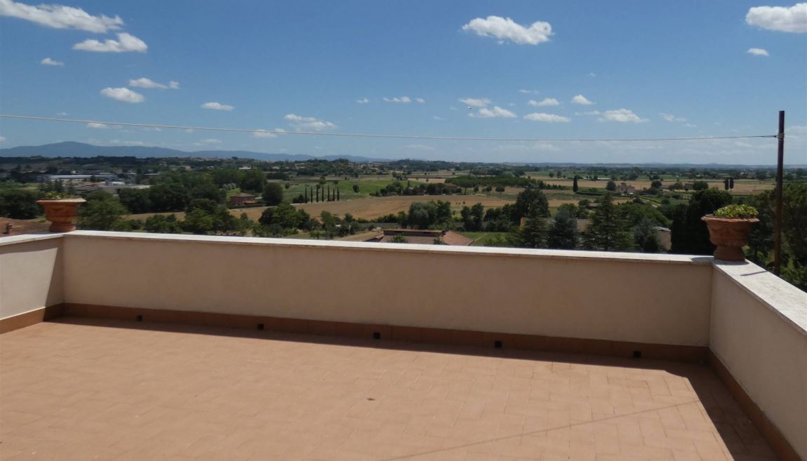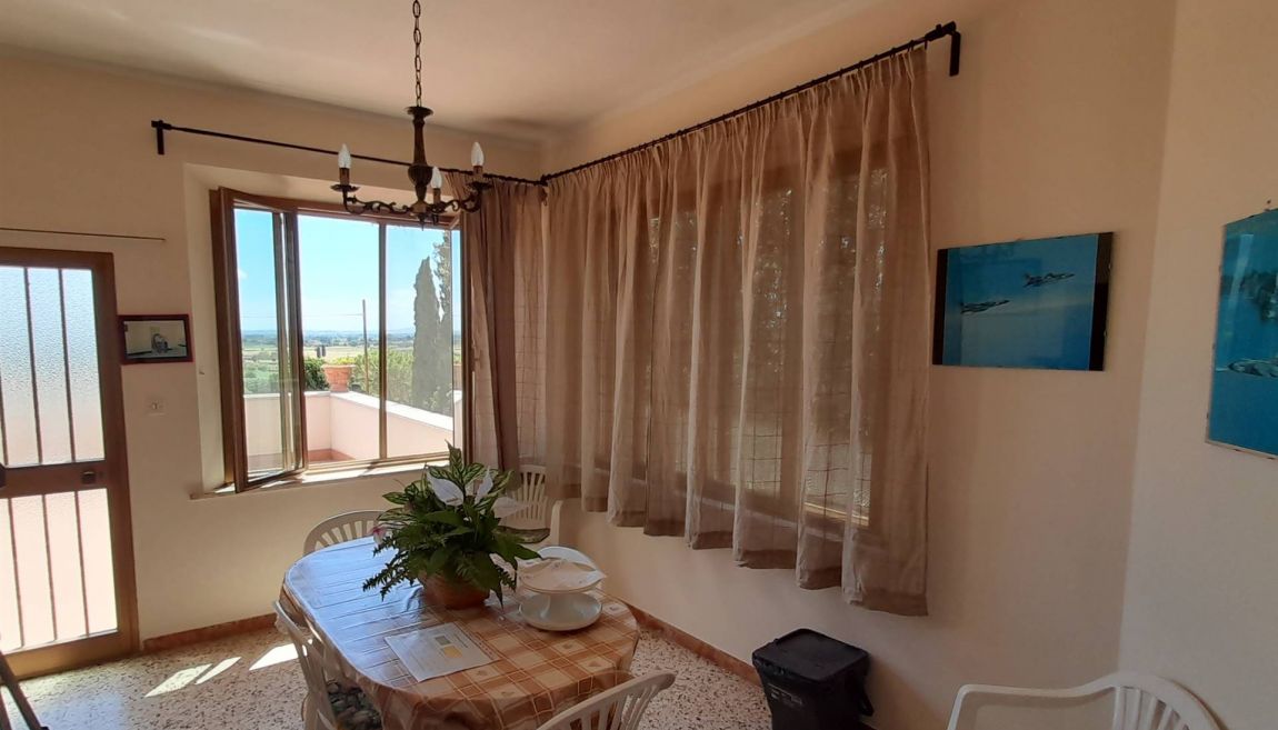 L'abitazione principale si compone da zona giorno e veranda che si affaccia su una grande terrazza panoramica, 3 grandi camere e 2 bagni.