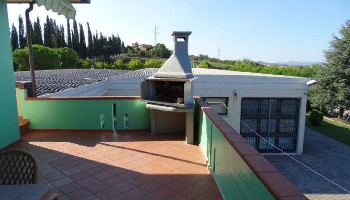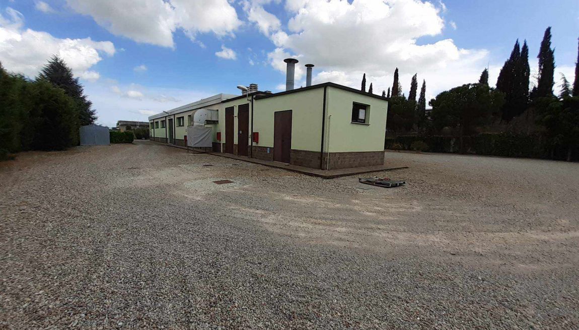 Vendesi fondo commerciale in Val di Chiana confinante tra le province di Siena e Arezzo , facilmente raggiungibile e ben servito , ( quali Autostrada A1, strade Provinciali ecc) , Il lotto e' di 8000 mq di cui circa 1400 mq occupati dall'immobile stesso.. Attualmente all'interno dell'area si può costruire per altri 500 mq . il capannoni sono uno di 450 mq e un altro affiancato di ulteriori 450 mq circa. Altezza dei capannoni 4,05 mt e le porte di ingresso carrabile sono alte 3,50 mt. L'immobile si trova in una zona Artigianale/Commerciale , comprende al piano terra: ingresso carrabile e pedonale, uffici, laboratori, locali tecnici , con altezza ml 4.00, i locali sono climatizzati e video-sorvegliati sia all'interno che all'esterno , gli impianti elettrici e termici sono indipendenti nei settori di produzione/commerciale il tutto i è servito da illuminazione esterna , area giardino è servita da impianto di irrigazione controllata. Adiacente al fabbricato si trova l'abitazione di mq 160 circa costituita da un piano parzialmente interrato comprende un grande garage, lavanderia e palestra , salendo la scala interna arriviamo all'abitazione con ingresso , soggiorno, cucina, studio, bagno, tre camere di cui una con bagno, veranda, terrazza , al piano secondo soffitta. La struttura è' in cemento armato, tutto il complesso e in buonissime condizioni.